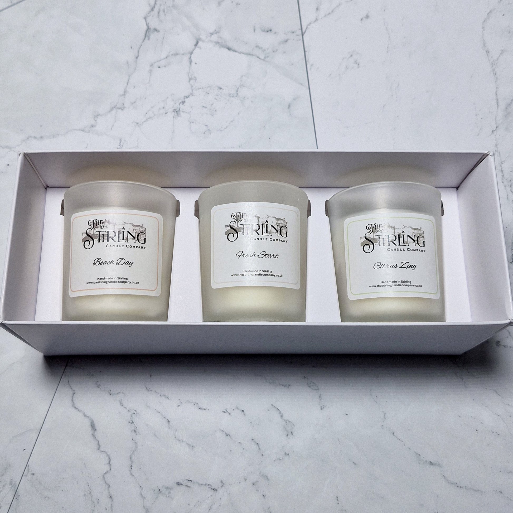 Collection No.1 is the perfect way to create a fresh ambience in any space. This set includes three 9cl candles, each with a unique and delightful scent. The candles are made with high quality ingredients and are hand poured into small glass jars. Give the gift of relaxation and tranquillity with our candle gift set.